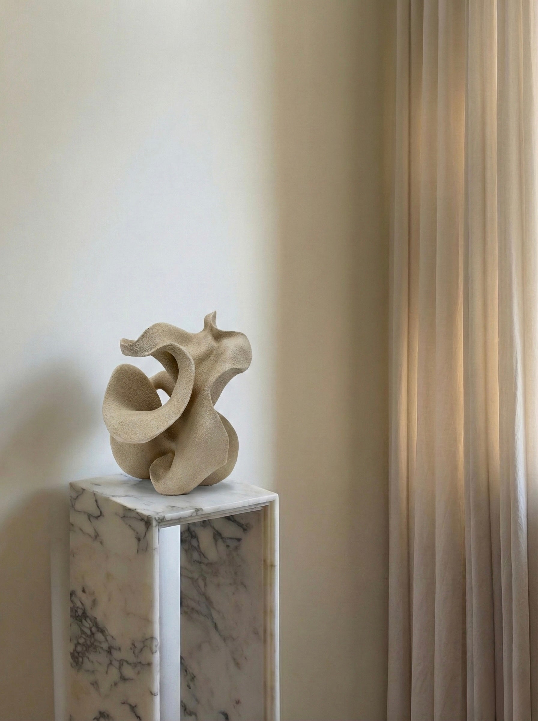 Entworfen und gefertigt mittels 3D-Druck aus Materialien organischen Ursprungs, verwandelt Banyu eine intensive natürliche Geste in ein ausdrucksstarkes und zeitgemäßes skulpturales Objekt und macht das Flüchtige dauerhaft. Jede Skulptur wird auf Bestellung hergestellt und von Hand vollendet, wobei jedes Detail sorgfältig ausgearbeitet wird, um ein einzigartiges Stück zu schaffen.