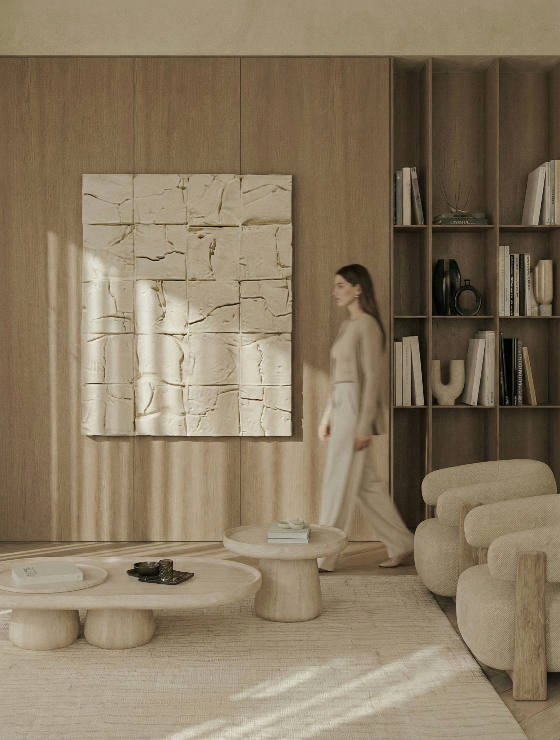 Panel decorativo impreso en 3D con un diseño de textura orgánica y agrietada que aporta profundidad y carácter a cualquier espacio. Perfecto para interiores modernos y minimalistas.
